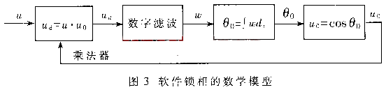 软件锁相原理是用计算机软件实现上述锁相过程。将图2的分频系数N取1,设输入u=Mcosθ,输出u0=M0cosθ0,其中θ和θ0是随时间而变化的量,则: