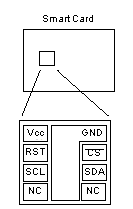 X76F100为1288位的保密串行FLASH E2PROM,其中读密码和写密码分别为64位。图2为其智能卡Smart Card封装的引脚图。把芯片封装在一个卡片上,将卡片插入IC卡读写器的卡座中,读写器就可以对它进行读写,实现加密、查询、存款、取款等功能。