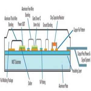 为了提供单一绝缘单列直插式封装(sip)的省位型高性能三相逆变器,该ipm利用了一种低成本绝缘金属衬底(ims)的优点。该 ims 采用具有高热导率的全模制塑料以方便多种元件(包括电源芯片、驱动器芯片以及所有其他可采用表面贴装的无源和有源分立元件)的紧密装配(图 1)。为了提供适当的屏蔽并最大限度地减少 emi,该组件中的铝板被保持在地电位。这种新型专有技术使得模块中的芯片能够均匀地分布热量以维持安全的额定温度。