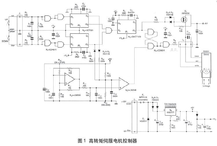有时用市场上现成的高转矩伺服电机比建造更方便。设计这种伺服电机用于无线电控制应用,如为了得到中心位置希望脉冲为1.5ms宽。除去已有电路并用一个简单的线性电压控制替代是可能的;然而,选择“不破坏它”而用一个外部脉冲产生器替代。此结果是比预期的更错综复杂。