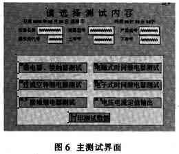 测试过程中有异常情况时,系统会根据检测的结果进行相应操作。例如,在测量继电器的吸合电压时,假如继电器线圈断线。根据常识在这种情况下无论系统怎么增加电压,触点都不会吸合,继电器都不会动作。因此,当系统加压到一定值后继电器如果还未动作,系统即认为继电器损坏,结束测量,弹出错误报告。还有其他异常情况,诸如打印时未接打印机、调压模块故障等。