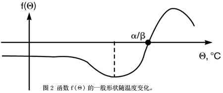 其中B、C、K是常数,f(Θ)是温度的函数。图2描绘了f(Θ)的一般形状。当f(Θ)尽可能接近于常数时,输出电压以线性关系依赖于温度。这种情况在f(Θ)的极小点周围最正确。一些额外的关系规定输出电压在0℃时为0V,转换系数为10 mV/℃,函数f(Θ)的最小值在测量范围中心,流过RΘ的电流导致的传感器自热可忽略不计。