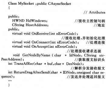 作为一种通信组件,他不仅需要完成上层HLA仿真主程序给他的发送报文的分发及从其他仿真节点收到的仿真数据报文的解析,还提供对外清晰的交互接口。同时作为仿真工作的一个部件,他需要工作在一个复杂的网络环境中,在不能很多程度上与占有宝贵的分布式处理机的处理时问,作为网络组件经常会在某些时间,等待连接、或者等待数据报文而发生严重的阻塞,以及需要不断的监听端口,从而耗费处理机时间,信号Windows提供了异步SOCKET的API接口使得组件设计能够一直以异步方式工作的应用层,不断向网络层接收和发送数据报文。但是单纯实用原始异步SOCKET的API接口仍然不能满足某些特定的要求,不能很好地融入HLA仿真应用系统中去。因此首先对Windows提供的异步SOCKET套接字CAsyncSocket进行特定封装。