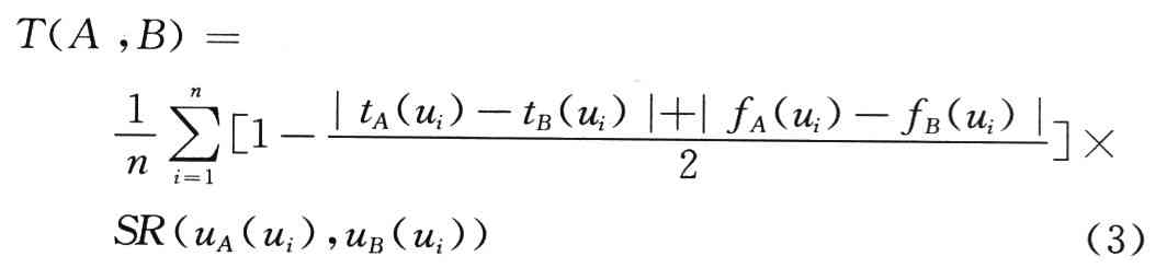 (ui)]/ui表示Vague集B中ui的隶属度值,则Vague集A和B的相似程度可由函数T进行计算: