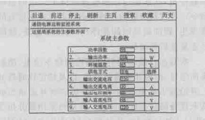 通过在嵌入式uCremm上的uClinux操作系统上移植HTTP服务器软件BOA,并设置其配置文件(boa. conf),可以指定主页和CGI程序所在路径。这里CGI程序用C语言编写,其实就是一些应用程序,如CAN通讯数据等,只是它能由远程浏览器通过点击主页而激活,从而实现浏览器和服务器的交互功能。如图3所示,用户在远程浏览器中输入嵌入式Webserver的IP地址后,需要登录用户名及密码,当得到服务器确认后,进入监控界面。图4为监控系统登陆界面,图5为系统主参数界面。
