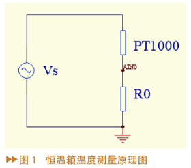 在热敏电阻的测量过程中,精确采集恒温箱的温度至关重要。对热敏电阻进行精确测量的前提条件是能够高精度、高分辨率地检测温度值。对恒温箱温度的采集由图1所示的电路原理图实现。
