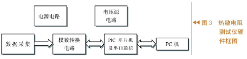 热敏电阻测试仪的硬件部分包括六个功能模块,硬件框图如图3。各模块功能简述如下: