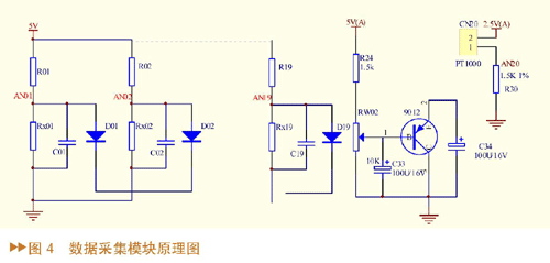 ·数据采集电路:将电阻值转化为相应的电压,传送到AD7731的数据采集引脚进行模数转换。实际的数据采集电路如图4所示。
