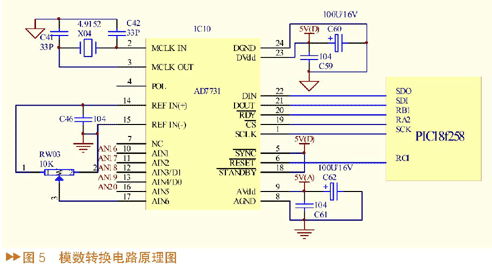 ·PIC单片机及串口通信模块:控制AD7731芯片完成数据采集,并将接收到的数据通过RS232串行口发送到上位机。电路中有关单片机和串口通信的电路如图6所示。