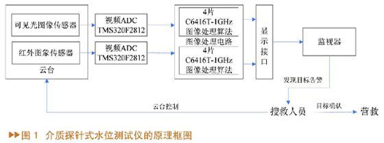 海上搜救服务是国家应急救援体系的重要组成部分,也是国家经济发展的重要保障。采用先进的搜索系统是提高搜救行动有效性的重要手段之一。通常情况下搜索系统采用雷达或者光电成像系统,因为光图像传感器具有很高的分辨率,在能见度理想的情况下,观测距离可达20"40km,但它的缺点就是在较大程度上依赖良好的天气及日照条件。而红外图像传感器具有穿透烟、雾、霾、雪等能力,可弥补这一不足,因此采用红外、可见光成像和DSP图像处理系统构成的光电搜索系统。