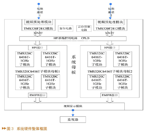 系统采用可拓展结构,可根据实际需要确定6416图像处理单元数目。通常采用四个或八个6416图像处理单元。