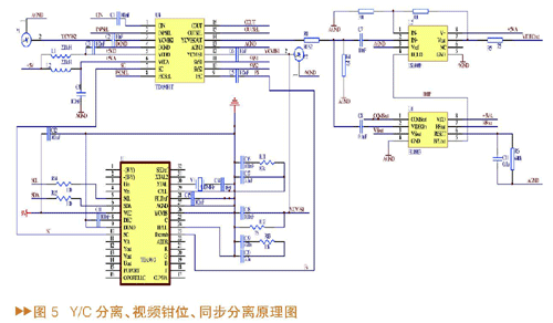 Y/C分离、视频钳位、同步分离电路原理图见图5。