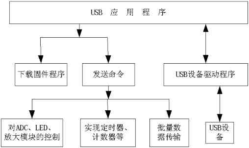 ADC、放大模块、采集模块进行控制,同时还要接收或者发送数据。在采集开始前,可以先将命令发送出去,实现在固件程序中定义的相应功能,如通过口线控制前置放大模块等。然后可以读取传送到主机的数据,或者向设备发送数据等。
