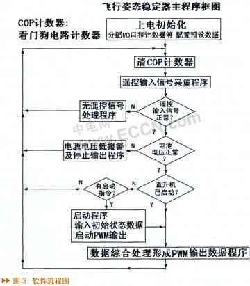 收到并确认遥控信号的启动信号时,同时启动三个电机。电机的启动速度很慢,保证直升机不会动。当电机的速度增加到使直升机有微小上升时,控制电路记忆保持直升机不动时电机的最大速度。这时启动过程结束,直升机的移动可随意遥控。