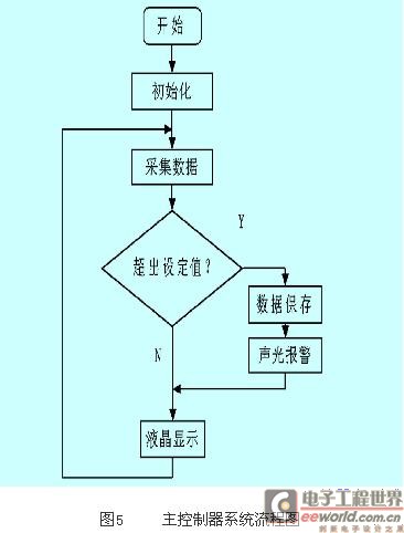 监控系统软件设计流程图如图5所示。当系统启动工作后,经过初始化,主单片机开始对支路进行参数设置,设置电流互感器变比,报警,预警延时时间,然后每隔50ms接收各个支路板实时数据。当ia、ib、ic、in通道电流超过设定电流值,支路单片机驱动继电器,并将通道状态传送给主控制器。