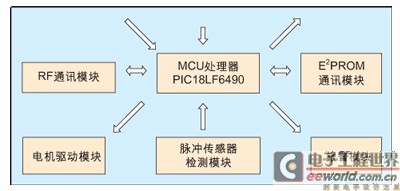 数据处理单元的单片机主要侧重于多项功能的开发,选择时主要从功能、抗干扰、功耗、速度等几个方面考虑。本系统采用Microchip单片机PIC18LF6490作为数据处理单元,该单片机具有以下特点:具有集成的LCD控制器驱动模块、高性能RISC CPU、优化的C编译器结构/指令系统、高达10MIPS的工作速度、中断优先级、单周期硬件乘法器、高吸入/拉出电流、3个外部中断引脚、4个定时器、 CCP模块、主同步串行端口模块、10位A/D转换器和低功耗等性能特点,因而软硬件设计十分方便。