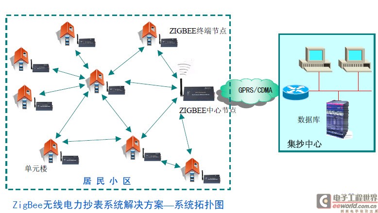 在实际应用中,我们选择了将zigbee技术与GPRS/CDMA结合起来,根据抄表用户的不同分布,来灵活地构建抄表的无线网络。