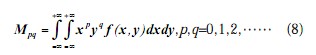 对于连续灰度函数 f(x, y),它的(p + q)阶二维原点矩Mpq 的定义为: