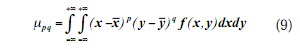 此外,还可以定义 f(x, y)的(p + q)阶中心矩μpq 为: