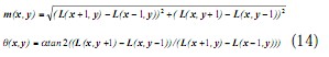 式(14)为(x,y)处梯度的模值和方向公式。其中L所用的尺度为每个关键点各自所在的尺度。