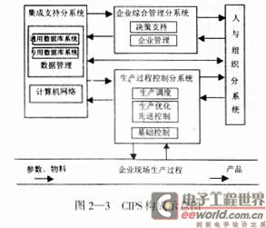 根据连续生产过程控制与工程总体优化、信息集成的需求,CIPS工程可由生产过程控制分系统、企业综合管理分系统、集成支持分系统、人与组织分系统4个分系统及相应的下层子系统组成,如图2—3所示。