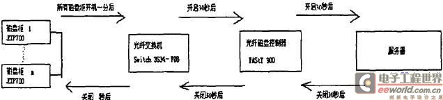 服务器机房系统中有UPS、磁盘柜(EXP700)、光纤交换机(Switch 3534-FO8)、光纤磁盘控制器(FAST 900)、服务器,整个系统的开启和断开都是有顺序而且对时间也有一定要求。一旦顺序紊乱,就会导致数据丢失。