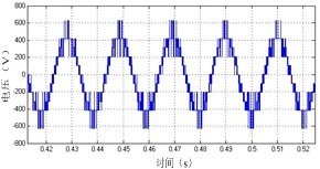 在Matlab/Simulink中建立了整个系统的仿真模型。其中,电机模型采用软件自带的两级三相异步感应电机模型,参数为:额定功率PN =3730W,额定线电压UN =380V,额定频率fN =50Hz,转子电阻Rr=1.083Ω,定子电阻Rs=1.115Ω,定子、转子电感Ls= Lr=0.2097H,定转子互感Lm=0.2037H,转动惯量J=0.02kgg㎡。逆变器每级直流电源电压为104V,采样周期Ts=952μs。
