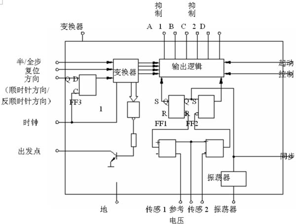 L297主要由译码器、两个固定斩波频率的PWM恒流斩波器以及输出逻辑控制组成,其内部结构图如图1所示。