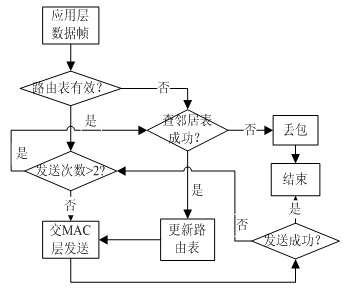 鉴于带状拓扑结构的特殊性,数据报文在找到目的节点的方向(即路由)后,如“接力”的方式依次往下传,所以不采用端到端的应答方式,而采用点到点的应答,这样节点能够知道下一节点的状态,发送数据包时,如果不能收到下一跳节点的应答包,则重复发送一次,仍然没有应答情况下,即认为下一跳发生故障,立刻从邻居链表中选择其它簇内的邻居节点作为下一跳节点,由此簇节点负责传送数据包。