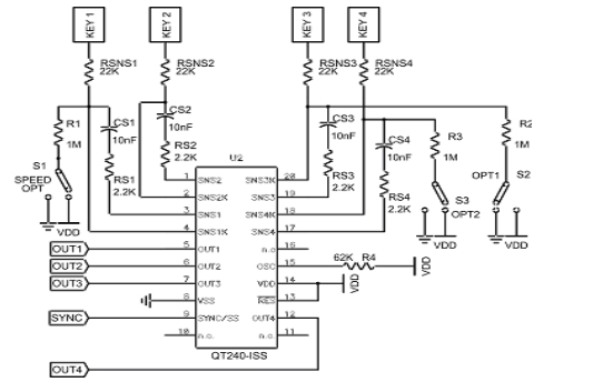 图2:使用QT240芯片的典型分离按键实现原理图。