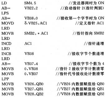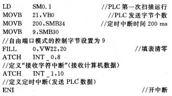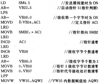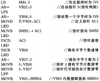 西门子S7-200PLC由于其体积小,可靠性高,通讯功能强大等特点,在工业控制领域得到广泛的应用,使用S7-200PLC高性价比的自由口通讯协议实现人机界面灵活方便。目前S7-200PLC接收计算机指令数据主要有两种方法:第一种方法是使用PLC自带的RCV指令来接收计算机数据;第二种方法采用PLC提供的“接收字符中断”方式,将SMB2(自由口接收字符缓冲区)定义指针,使用指针接收数据。