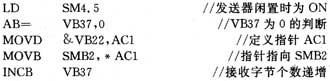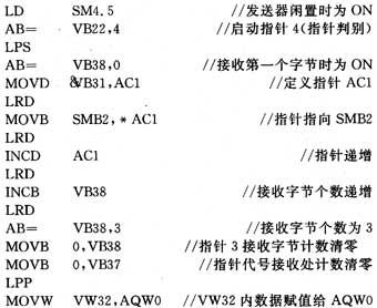 使用PLC提供的“接收字符中断”方式,将SMB2(自由口接收字符缓冲区)定义指针,使用指针接收数据。此方法若仅仅定义一个指针,其效果和“RCV”指令是一样的。但此方法由于其使用起来比较灵活,故本文设计了一种多地址指针接收数据的方法,即在计算机向PLC写入数据时,仅写入指针判别的代号和对应数据就可完成上位机对下位机的写指令,不同的代号对应不同的地址,与以往使用“RCV”指令相比,有效地减少了写指令的数据,提高了通讯效率。本文在设计PLC与上位机的串口通讯中设计了此种方案,尚未见其他同类文章使用。