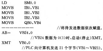网络1:通过VB24接收的数据控制XMT的“启/停”动作,进而控制PLC向计算机发送数据。