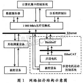 该系统为某主机电控系统,完成对光束的准直过程中的参数诊断、数据采集、闭环控制等实时控制功能以及与主控系统的通信功能。步进电机以性价比高,实时效果好,不需要昂贵的反馈系统著称,该系统中采用了一千多个步进电机来实现对光束的准直。神光原型采用控制卡控制大量步进电机,控制卡控制步进电机没有负载位置的反馈信号,实时效果差,故障定位非常困难;试验中采用西门子PLC(Programmable Logic Controller,可编程逻辑控制器)控制这些电机可靠性好,但控制少量步进电机时比较简单,控制大量步进电机时时序复杂,接线复杂,成本高,调试困难。最终方案采用德国Beckhoff公司的自动化产品,如嵌入式控制器,现场总线端子、步进电机总线端子等设备控制电机,该方案具有成本较低、操作简便、占用空间小等优点,也提高了系统的性能和可靠性,现已通过试验和评审进入调试阶段。