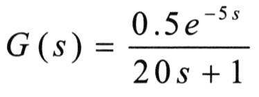 实验时,被控对象的放大倍数K取0.5,T(时间常数)取20s;τ(时滞)=5s。即对象为: