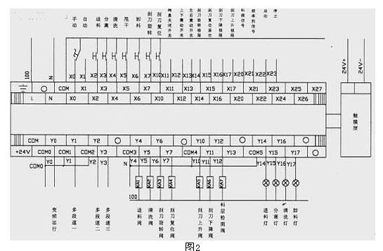 系统采用三菱公司FX2N-40MR型可编程序控制器(PLC)控制,当程序设定好后可进行无人看护