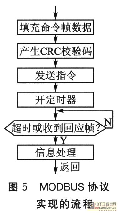 为增加信号传输的距离并提高抗干扰能力,MODB-US物理层采用标准的RS485通信。MODBUS协议实现软件的流程如图5所示。