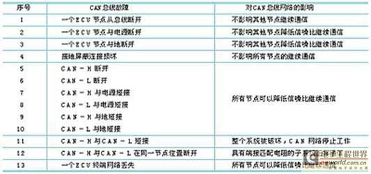 表1can总线故障及其影响分析