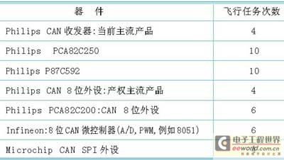 表2surrey大学采用的cots can器件统计列表
