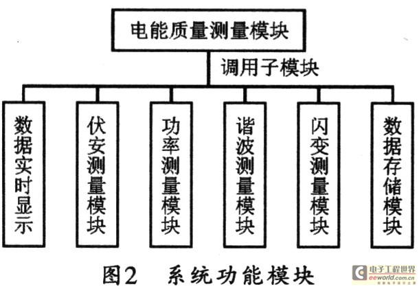 基于虚拟仪器技术的电气化铁路电能质量参数监测系统要实现的功能包括实现对电压电流的有效值、电压偏差、电网频率、频率偏差、三相不平衡度、谐波含有率和闪变等不同参数的同时测量。因此,本设计采用模块化方法,每一个功能模块完成相应的功能,最后通过整合来完成系统的设计。采用模块结构的最大的优点是效率高。由于模块可以共享数据,并可相互调用,因此,可以通过灵活组织各个模块来达到非常高的整体效率。如果需要对模块某一功能进行升级,只需要改写相应的模块,而不需要改动整个软件结构。而当需要增加系统功能时,也只需要增加相应的软件功能模块即可。