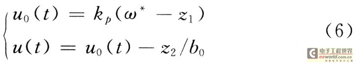 于是得到的基于扩张状态观测器的比例控制器的表达式如下: