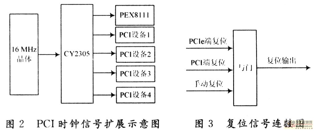复位输入有三个,来自PCIe端的复位,来自PEX8111复位输出,手动复位信号,保证在主机侧出现冷复位和要求本板单独复位的情况下,可以将复位信号向下传递,如图3所示。