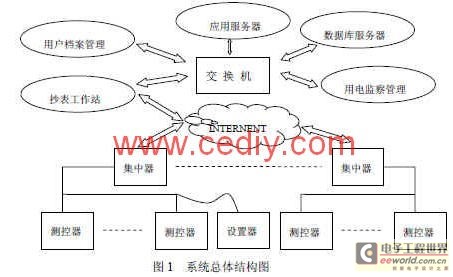 基本系统由抄表工作站、数据集中器、电表测控器、参数设置器和管理软件组成。系统总体结构如图 1所示。
