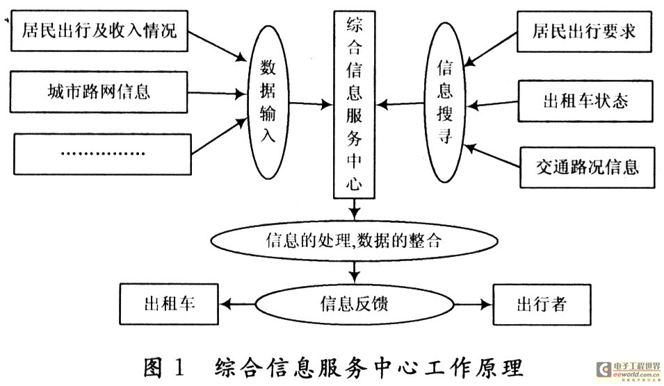 城市出租车系统综合信息服务中心主要是依托城市公共交通智能化平台,以先进的地理信息系统(GIS)技术、GPS技术、计算机技术、通讯技术为基础,建立大量的信息采集与发布系统硬件、开发信息处理软件、埋设传输光缆。要使交通信息应用好,必须建立健全智能交通系统的各个部分,如出行与运输管理系统、交通监控系统、先进车辆安全系统、商用车辆运行系统、公共交通运输管理系统、电子收费系统、紧急情况管理系统等。目前国内外信息采集硬件主要以传感型的检测器技术(如机械式、光电式、电磁式、地磁式、超声波式等)、视频型的图像捕捉技术和信息通讯技术(有线通讯、无线通讯、卫星通讯、GPS定位)等新技术,以市场运作模式建立统一的出租车信息服务中心,为出租车运营企业和出行者提供综合的信息服务。