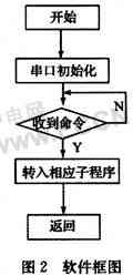 下位机SoC接收到PC的下发消息后,通过串口中断程序转入相应的子程序,执行相应操作,最后返回一个握手信号做为状态标志,确认命令是否被正确执行。