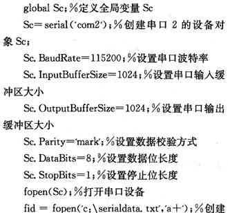 要想在MATLAB中使用串行口,首先要借助serial类建立串口对象,并在使用前将该串口对象打开。数据传输完毕后,需关闭该串口对象,避免影响其他程序无法对该串口对象的使用。在系统不再使用该串口或者退出系统时,需要将该串口对象清除并从MATLAB工作空间清除,避免占用内存和影响其他系统使用。
