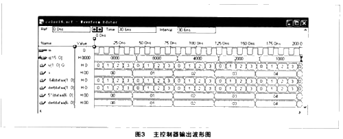 最后,当各个模块均完成上述操作之后,即可利用MAXPLLUS2的原理图输入,调用各个元器件(底层文件),以原理图的形式形成最后的十六路彩灯显示系统(顶层文件),并且进行仿真。仿真通过,即可下载到指定的CPLD芯片里面,并进行实际连线,进行最后的硬件测试。当然,可以将各个模块所生成的元件符号存放在元件库中,以被其他人或其他的设计所重复调用,以简化后面的设计。