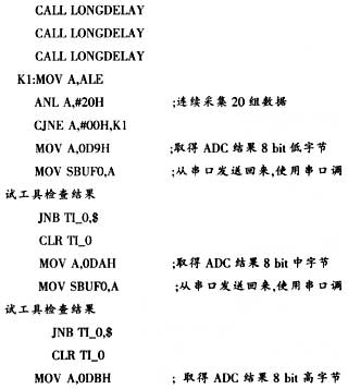 AD转换部分一般情况下顺序进行多信道数据采集,在上位机发来指令时,可以跳转到相应的数据采集程序部分,在此列出一段采集程序。