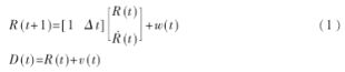 是其速度(未知),D(t)为距离观测值,Δt为两次观测的间隔时间,w(t)和v(t)为高斯噪声。给定D(t),由Kalman滤波器估计R(t)和