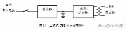 有人说:由于目前的电网供电质量不高,电压波动很大,不得不采用带变压器的工频机UPS,并说工频机变压器就可以使UPS系统适应电网电压的大幅度变化,这也正是用户所关心的问题,难怪可以打动用户的心。事实如何呢?可从图14看得明白。从图中可以看出,